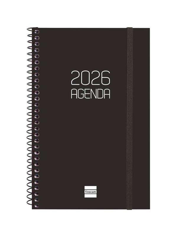 Disposició pàgina:SETMANA VISTA HORITZONTALDurada agenda:GENER 2026 - DESEMBRE 2026 (12 MESOS)Família:AGENDA ESPIRAL ANUALFormat:E5 - 117 × 181 mmGramatge:80 g/m²Longitud unitat:125 × 181 × 14 mmColor:NEGREMaterial acabat:COBERTES DE POLIPROPILÈ OPAC, ESPIRAL METÀL·LIC SIMPLE I PAPER.