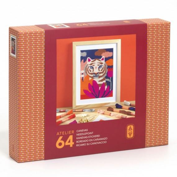 Amb el cofre "Fauve" de l’Atelier 64, t’inicies en aquesta tècnica artística que consisteix a brodar un dibuix amb punts comptats sobre una tela impresa o tramada, utilitzant una agulla i fils de colors.