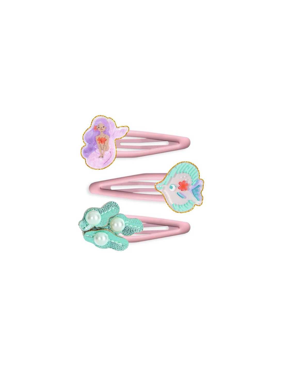 Descobriu les pinces Marina de la col·lecció Plume de Djeco, un conjunt de 3 pinces inspirades en l’univers de les sirenes. Aquests accessoris de cabell elegants i refinats són ideals per realçar els pentinats dels infants.
