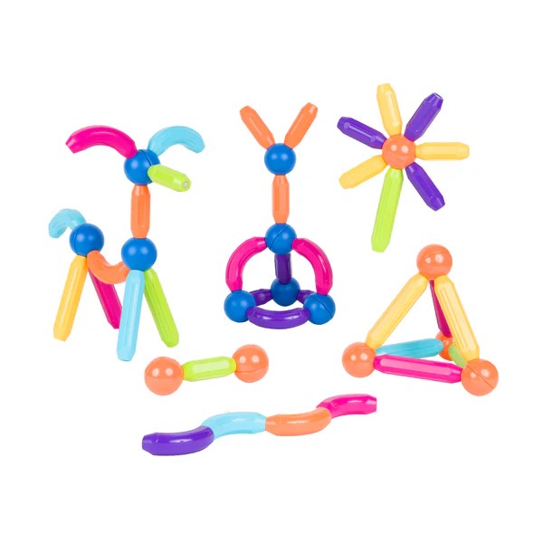 Amb aquest nou joc de boles metàl·liques i barres imantades de colors molt divertits, podràs apropar la construcció en 2D i 3D als més petits d’una manera genial.Desperta la imaginació des dels primers anys! ??????