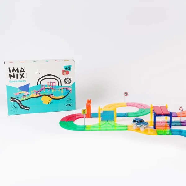 3, 2, 1… Som-hi!Construeix la teva pròpia pista en 2D i 3D amb aquestes peces geomètriques de diferents mides i colors.Vinga… accelera!Així sentiràs el vent a la cara! ???????